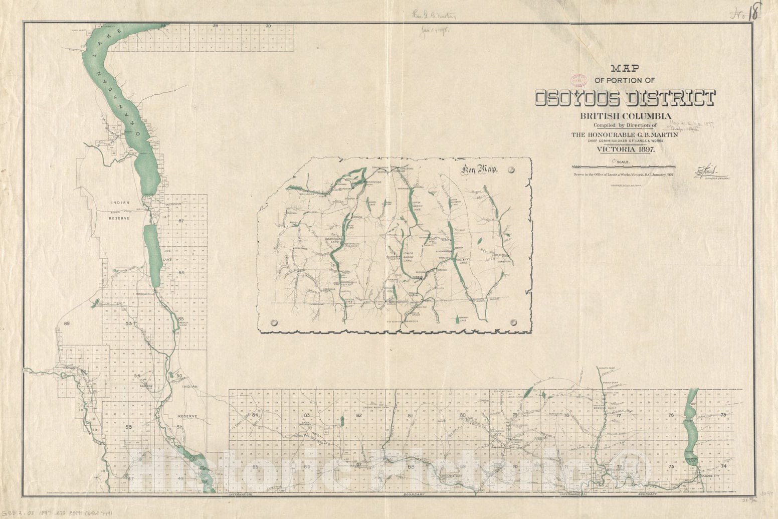 Historical Map, 1897 Map of Portion of Osoyoos District, British Columbia, Vintage Wall Art