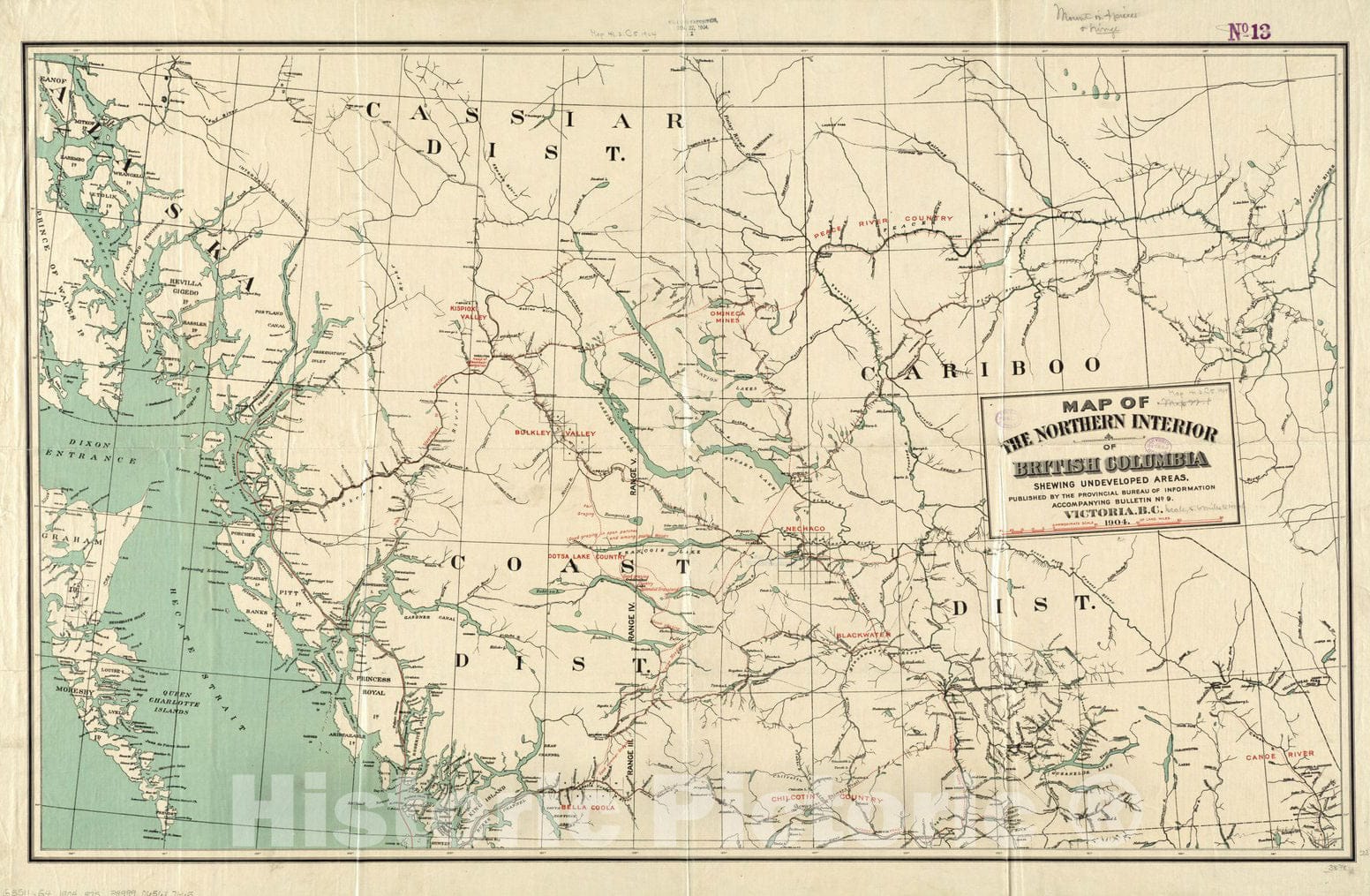 Historical Map, 1904 Map of The Northern Interior of British Columbia shewing undeveloped Areas, Vintage Wall Art