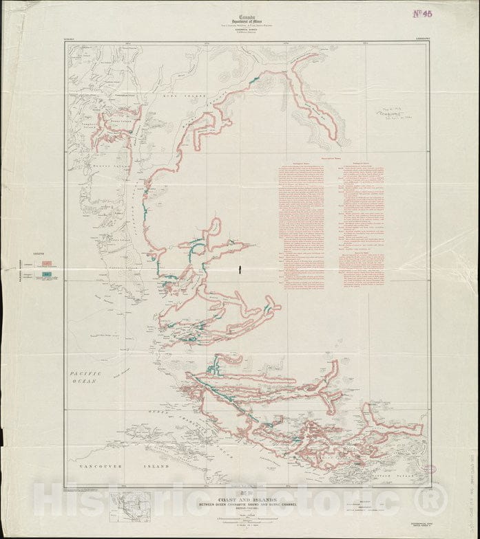Historical Map, 1913 Coast and Islands Between Queen Charlotte Sound and Burke Channel, British Columbia, Vintage Wall Art
