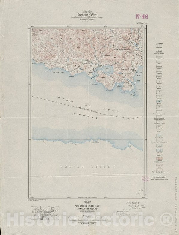 Historical Map, 1914 Sooke sheet, Vancouver Island, British Columbia, Vintage Wall Art