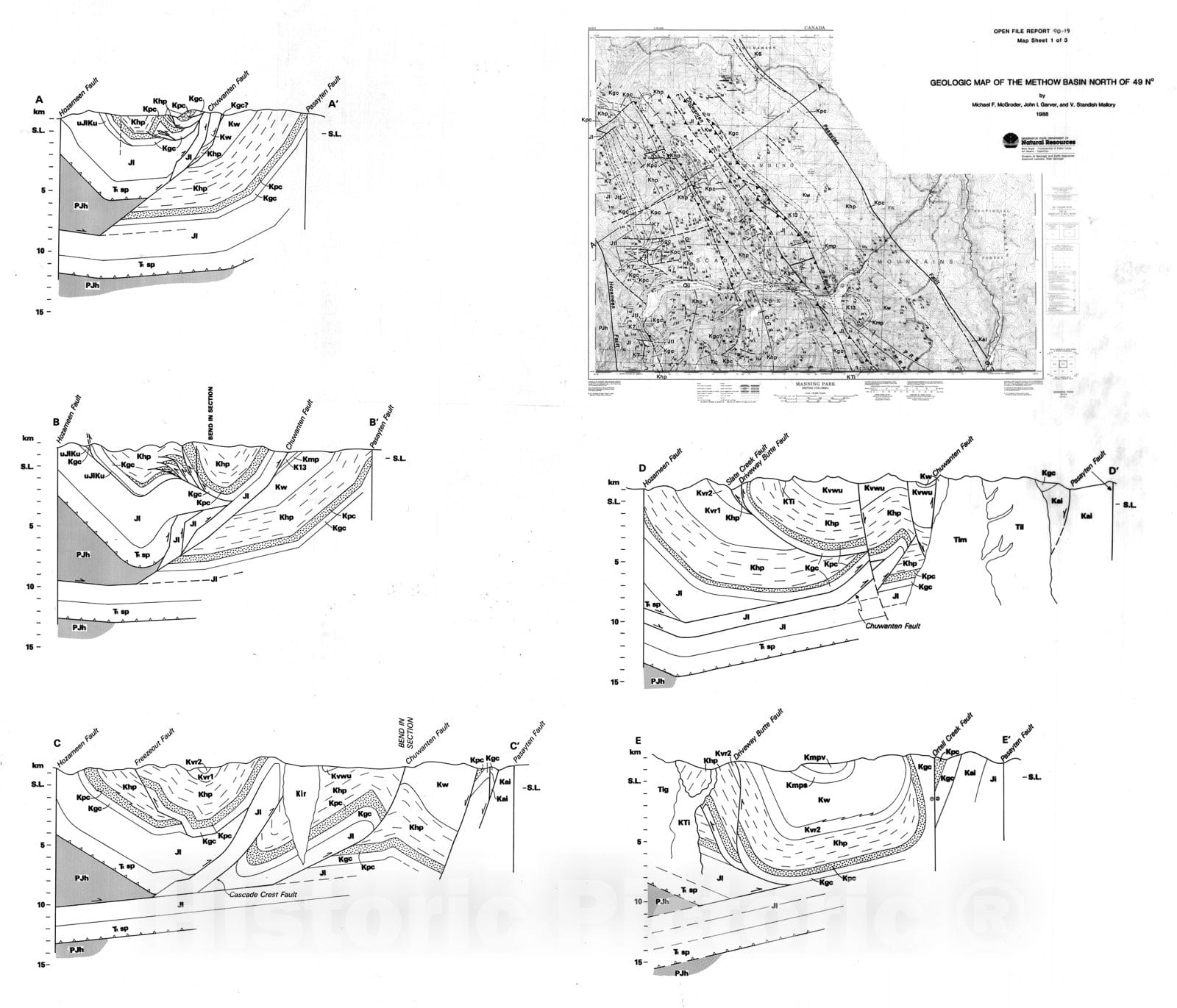 Map : Bedrock geologic map, biostratigraphy, and structure sections of the Methow basin, Washington and British Columbia, 1990 Cartography Wall Art :
