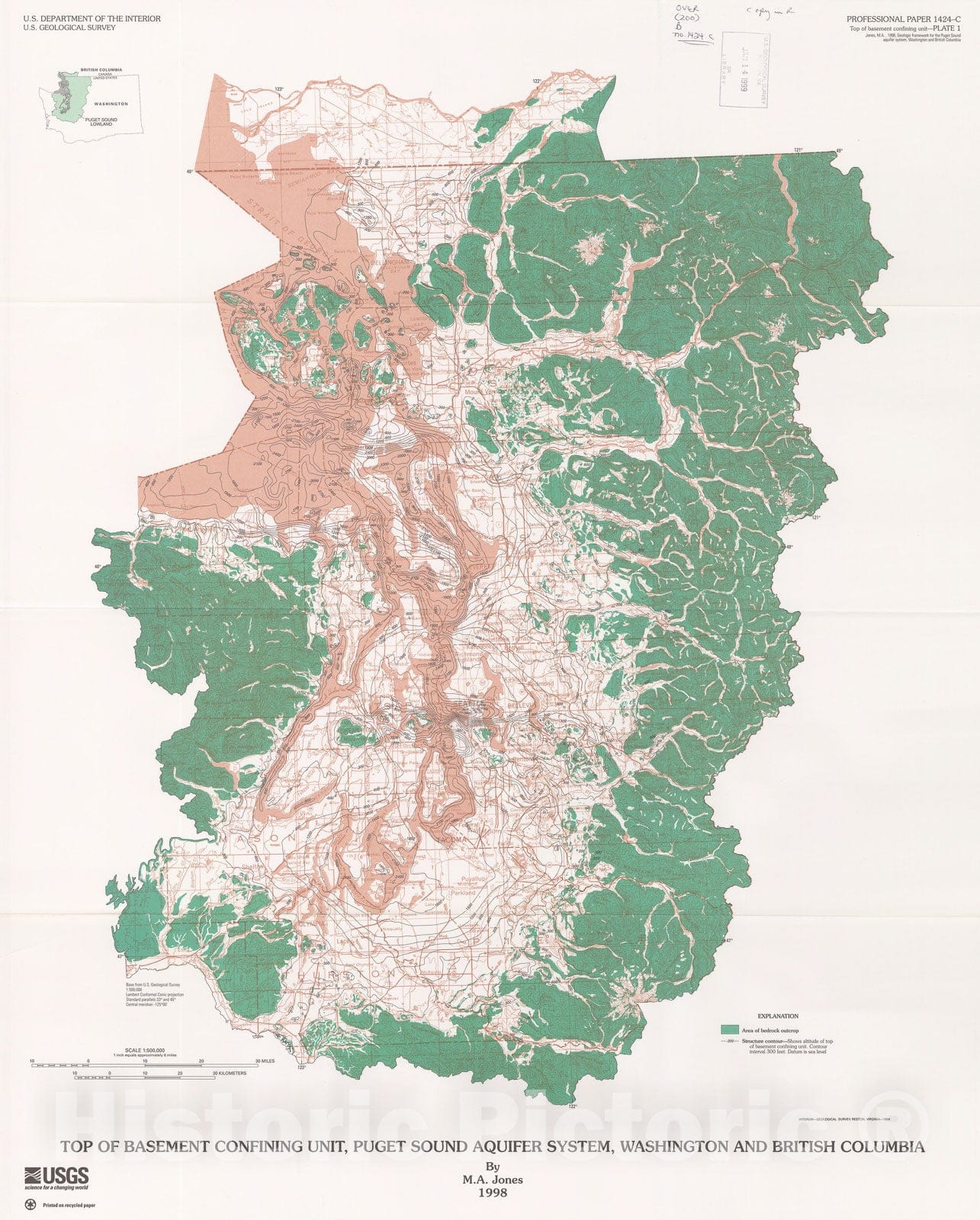 • .Map : Geologic framework for the Puget Sound aquifer system, Washington and British Columbia, 1999 Cartography Wall Art :