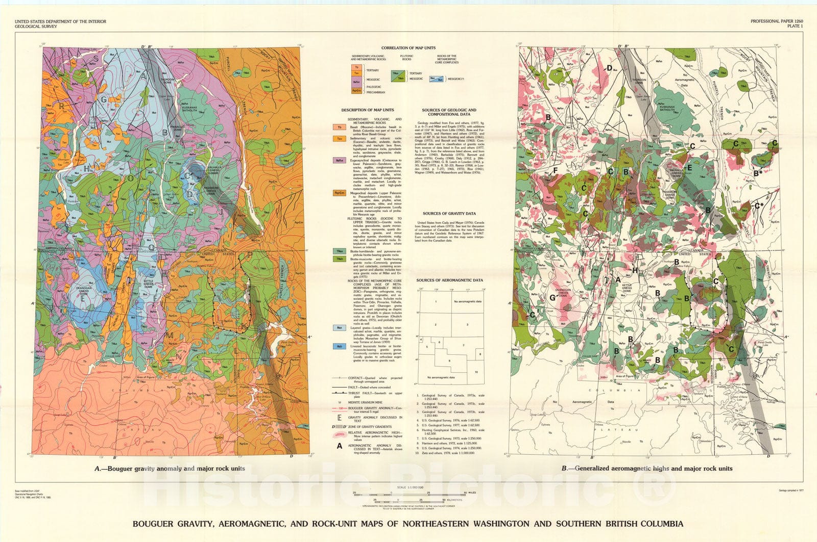 • .Map : Geophysical interpretation of the gneiss terrane of northern Washington and southern British Columbia, and its implications for uranium exploration, 1984 Cartography Wall Art :