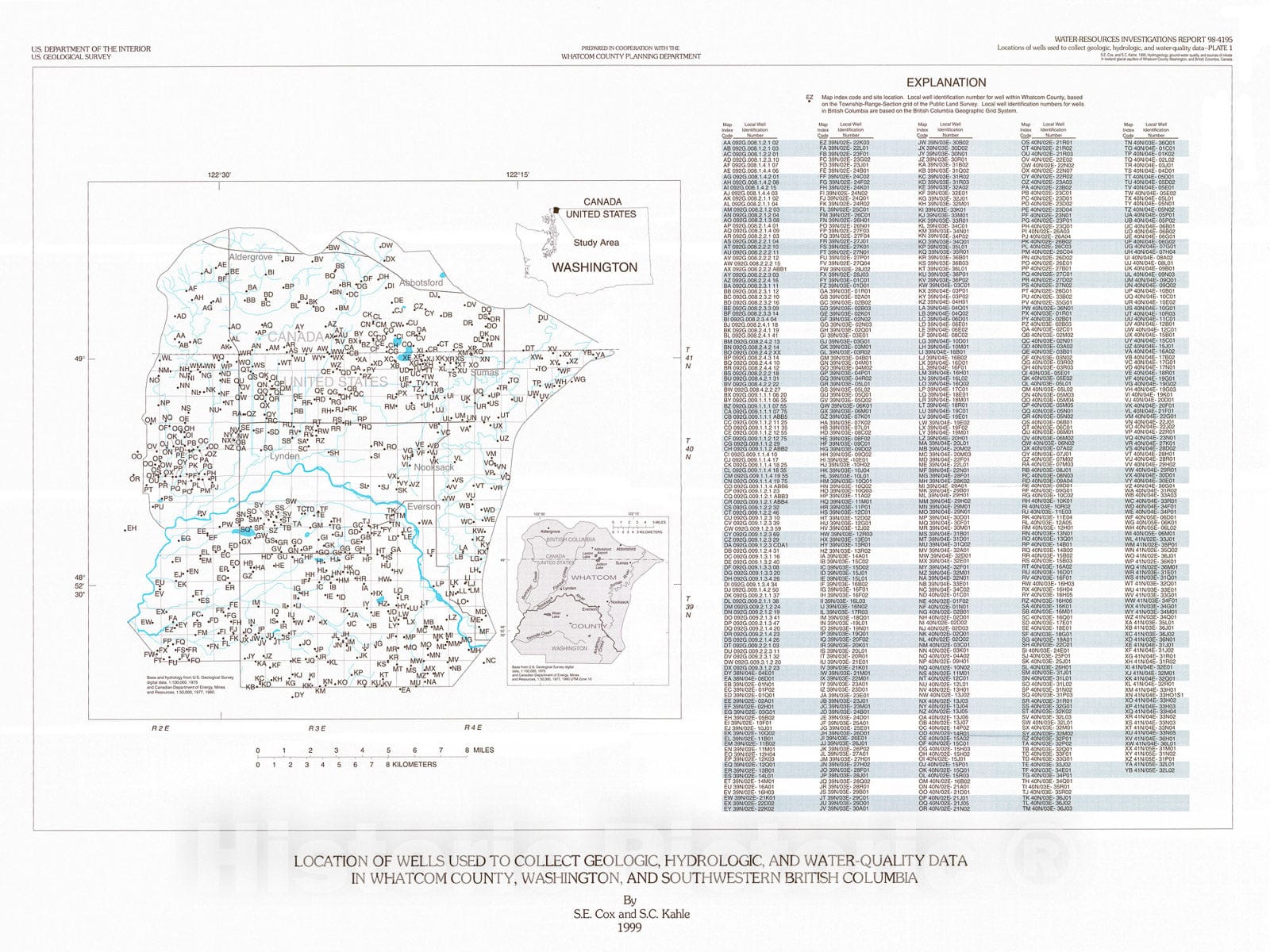 Map : Hydrogeology, ground-water quality, and sources of nitrate in lowland glacial aquifers of Whatcom County, Washington, and British Columbia, Canada, 1999 Cartography Wall Art :