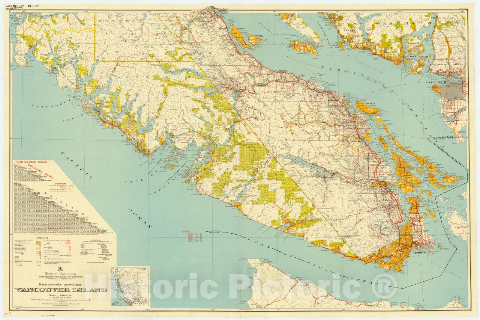 Map : Vancouver, British Columbia 1951, Southerly portion Vancouver Island , Antique Vintage Reproduction