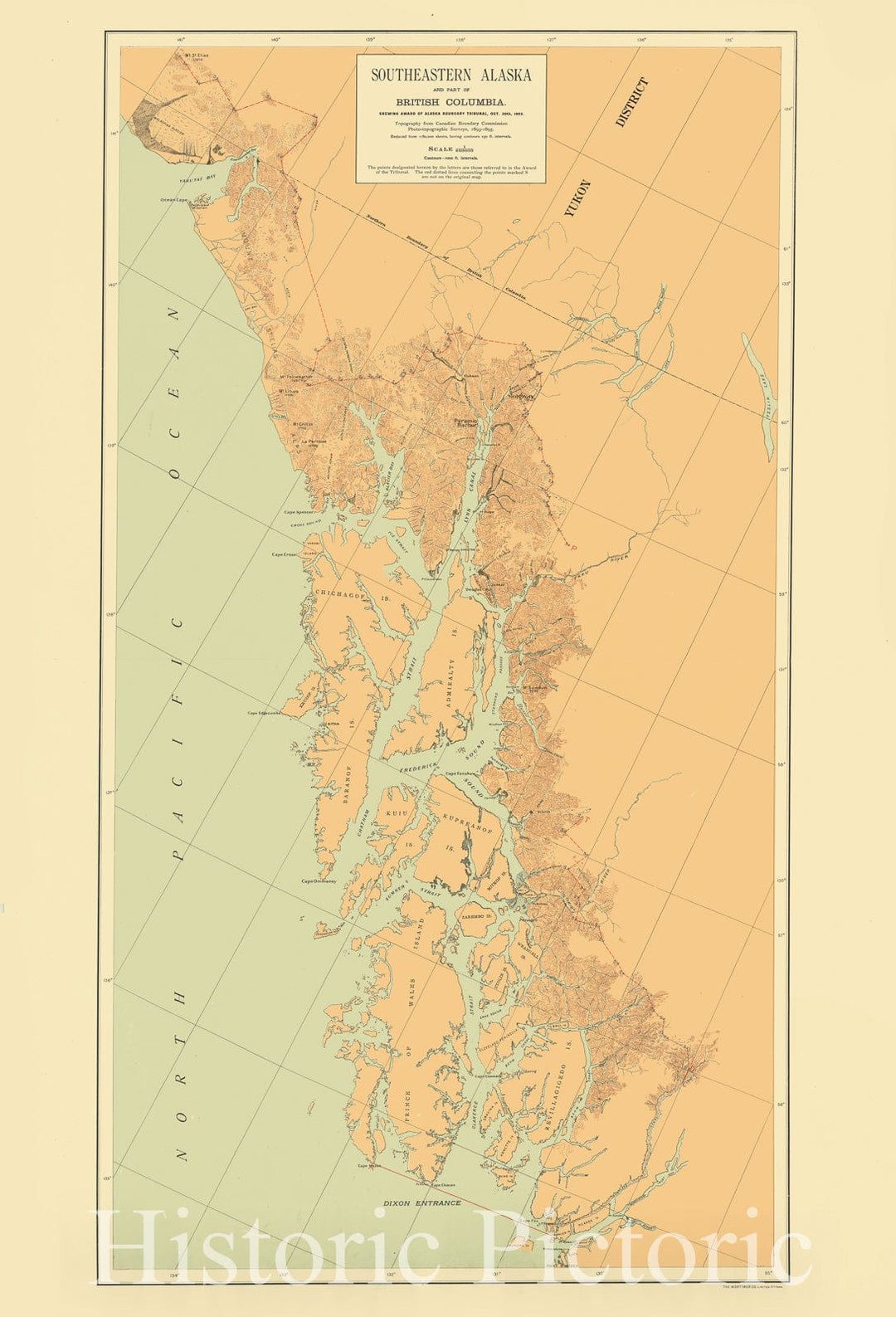 Map : Alaska 1903, Southeastern Alaska and part of British Columbia : shewing award of Alaska Tribunal, Oct. 20th, 1903, Antique Vintage Reproduction