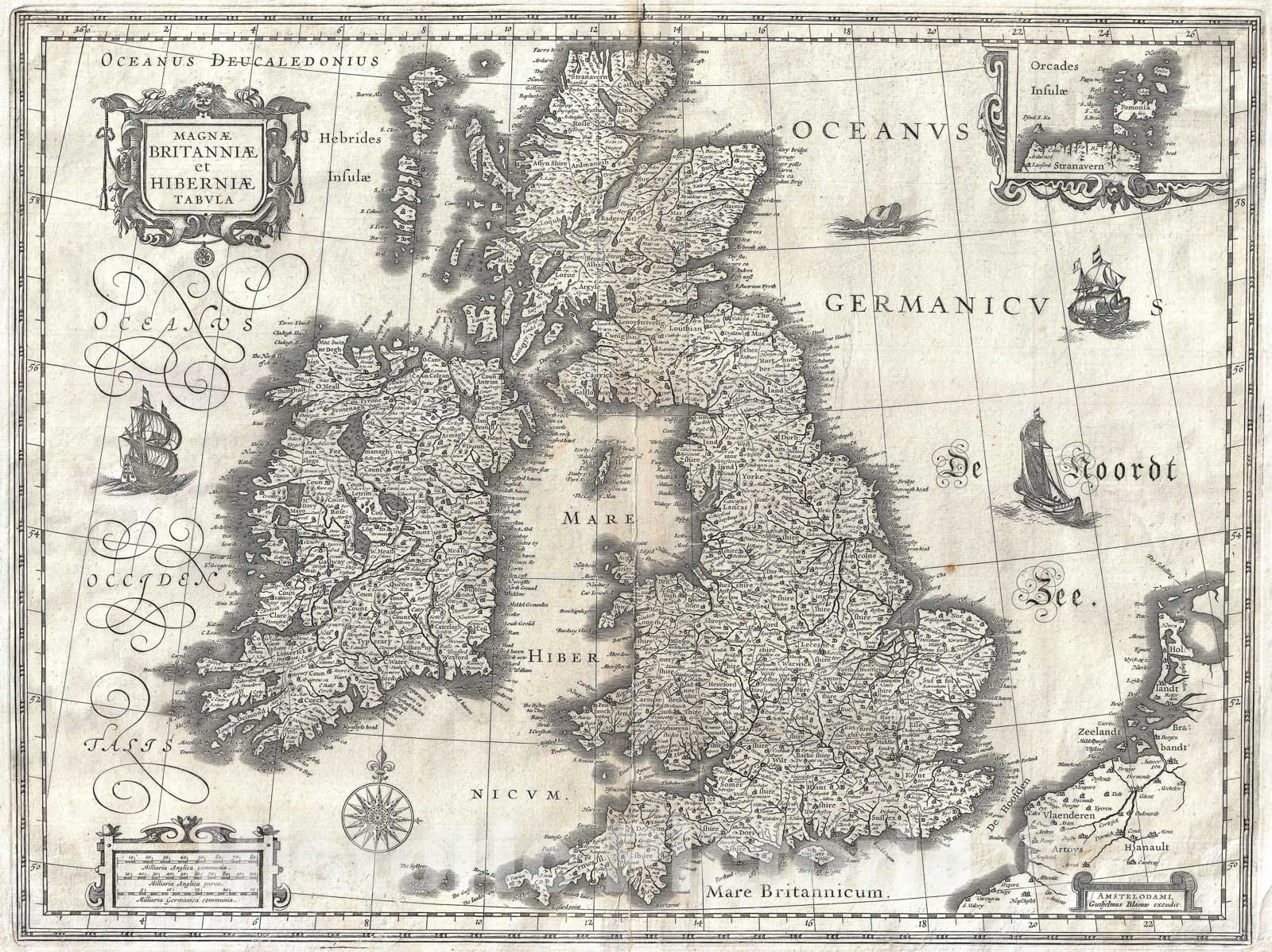 Historic Map : Blaeu Map of The British Isles (England, Scotland, Ireland), 1631, Vintage Wall Art