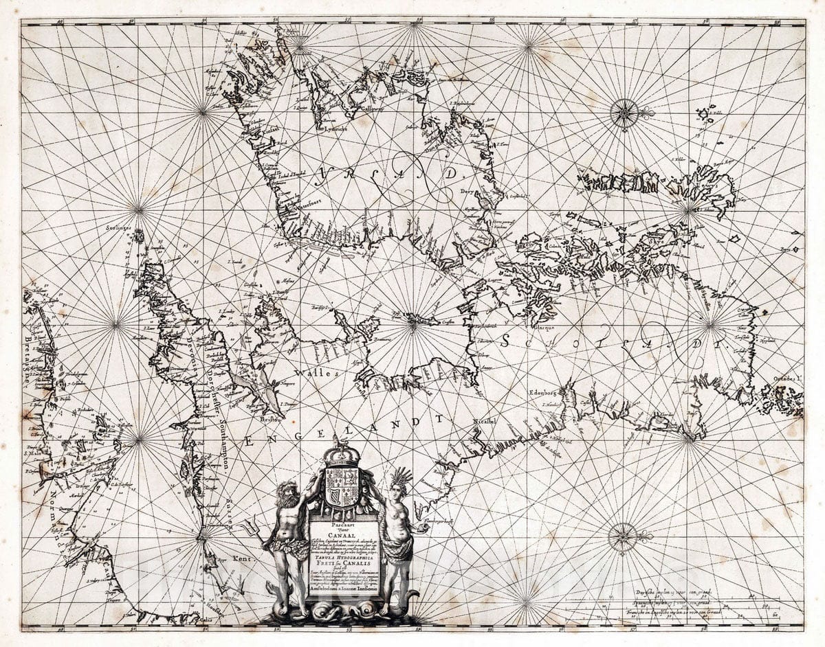 Historic Map : British Isles 1650 Pascaart Vant Canaal, Tabula Hydrographica Freti seu Canalis. , Vintage Wall Art