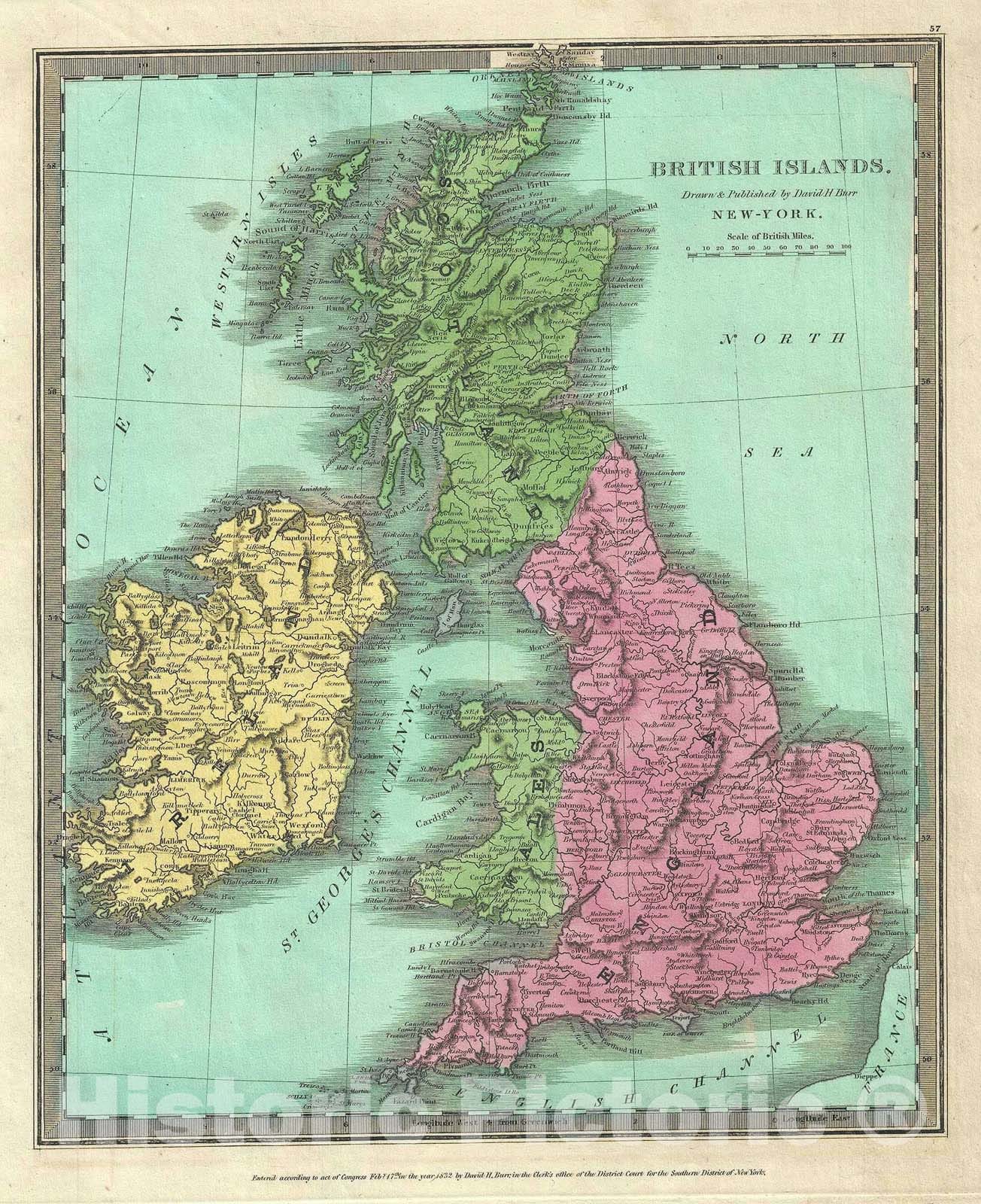 Historic Map : The British Isles "England, Wales, Ireland, Scotland", Burr, 1832, Vintage Wall Art