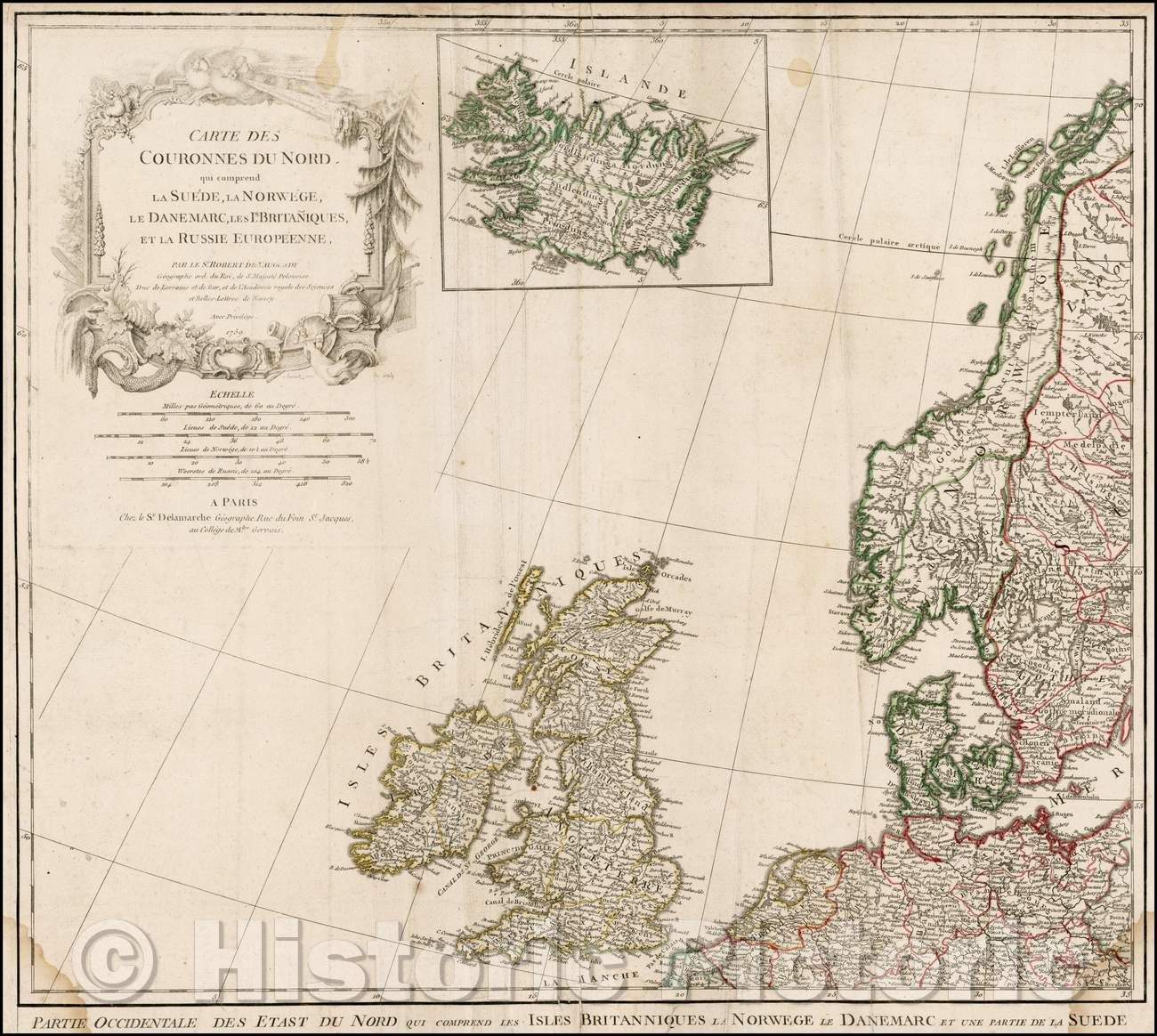 Historic Map - Carte des Couronnes Du Nord qui compend La Suede, La Norwege/De Vaugondy's 2-sheet Map of the British Isles and Scandinavia, 1759 - Vintage Wall Art