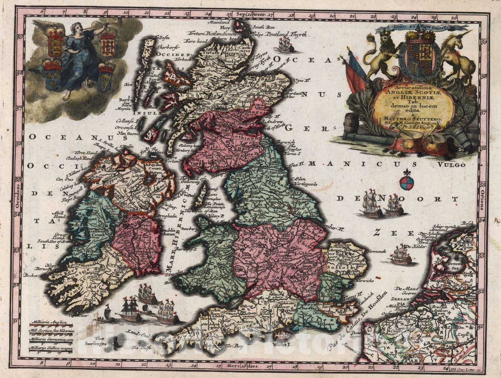 Historic Map : England, British IslesAccuratissima Angliae Scotiae et Hiberniae 1744 , Vintage Wall Art
