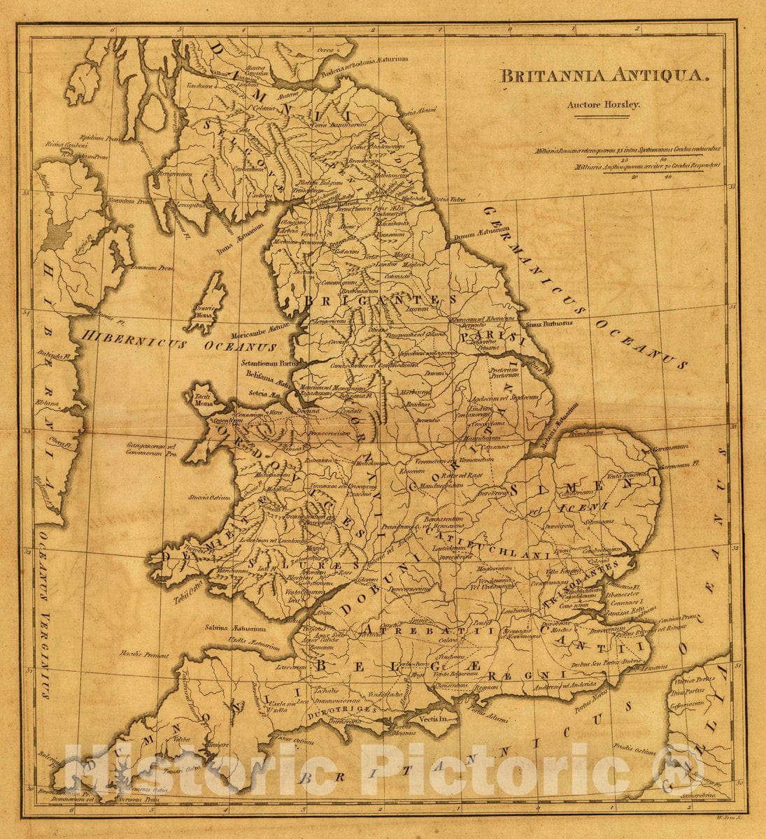 Historic Map : England; Ireland, British Isles Britannia Antiqua. Auctore Horsley. W. Sim, Sc. (1814?), 1814 Classical Atlas , Vintage Wall Art