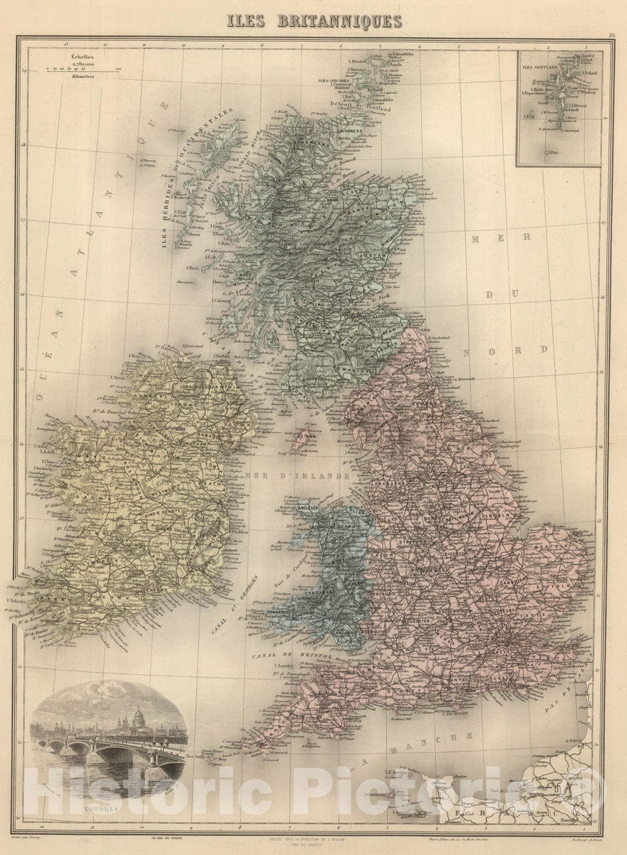 Historic Map : England; Scotland, British Isles 1892 Les Britannique. , Vintage Wall Art