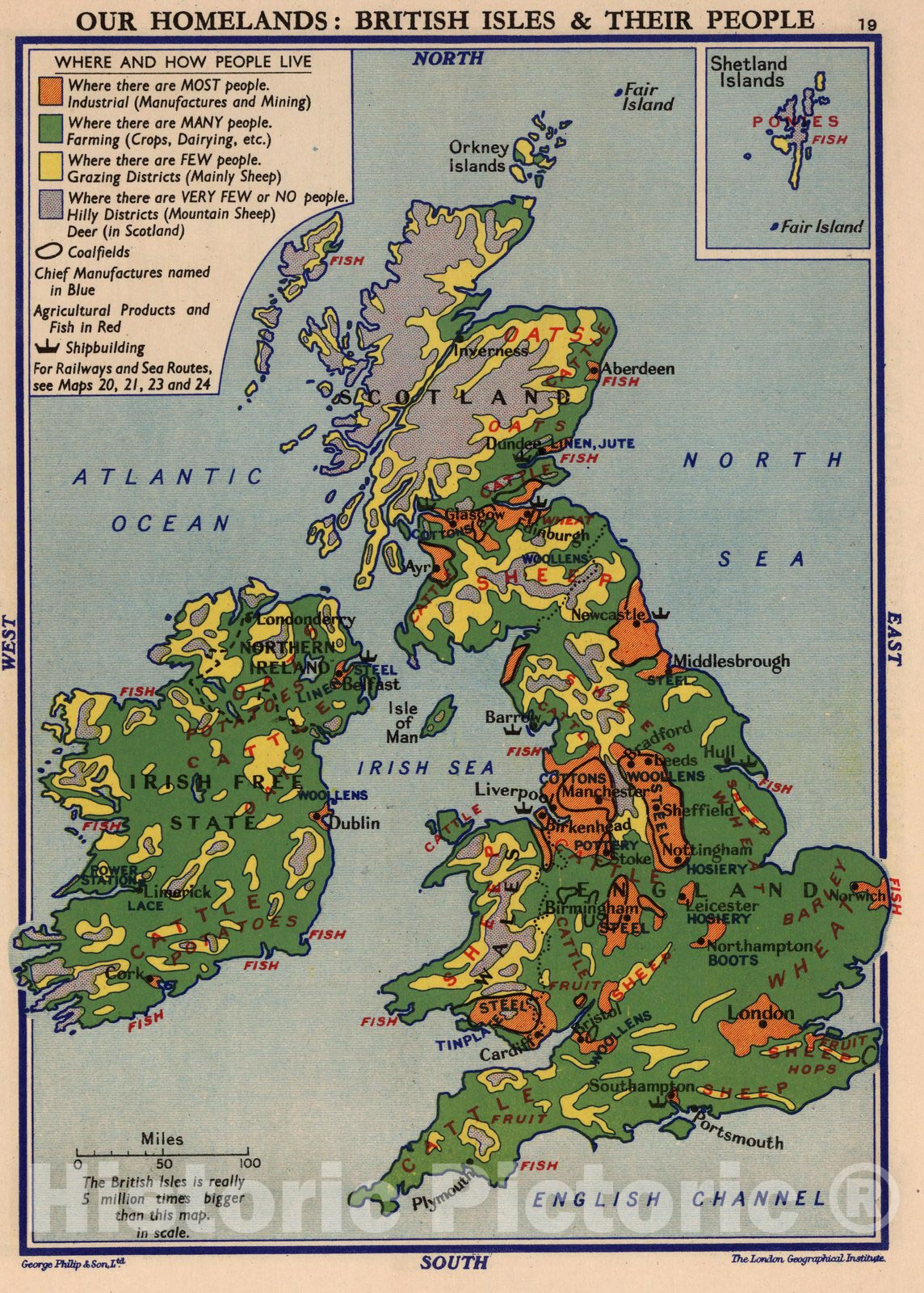 Our Homelands: British Isles & their People. | Philips' Pictorial Atlas of the World showing Where and How People Live. Edited by George Philip. George Philip & Son, Ltd., 32 Fleet Street, E.C. 4. ... Printed in Great Britain. | Date estimated.