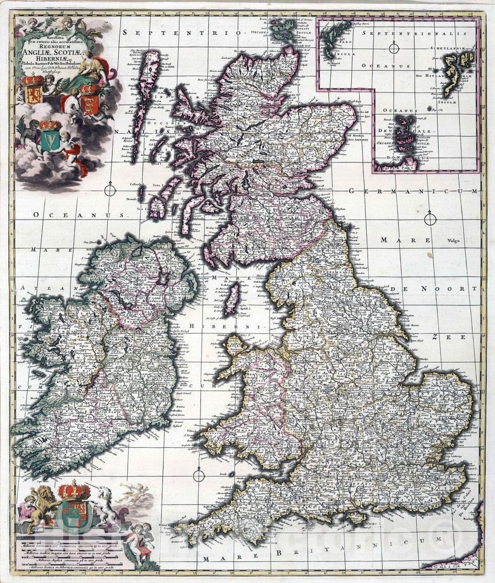 Historic Map : Ireland, British Isles 1682 Novissima prae caeteris aliis accuratissima Regnorum Angliae, Scotiae, Hiberniae. , Vintage Wall Art
