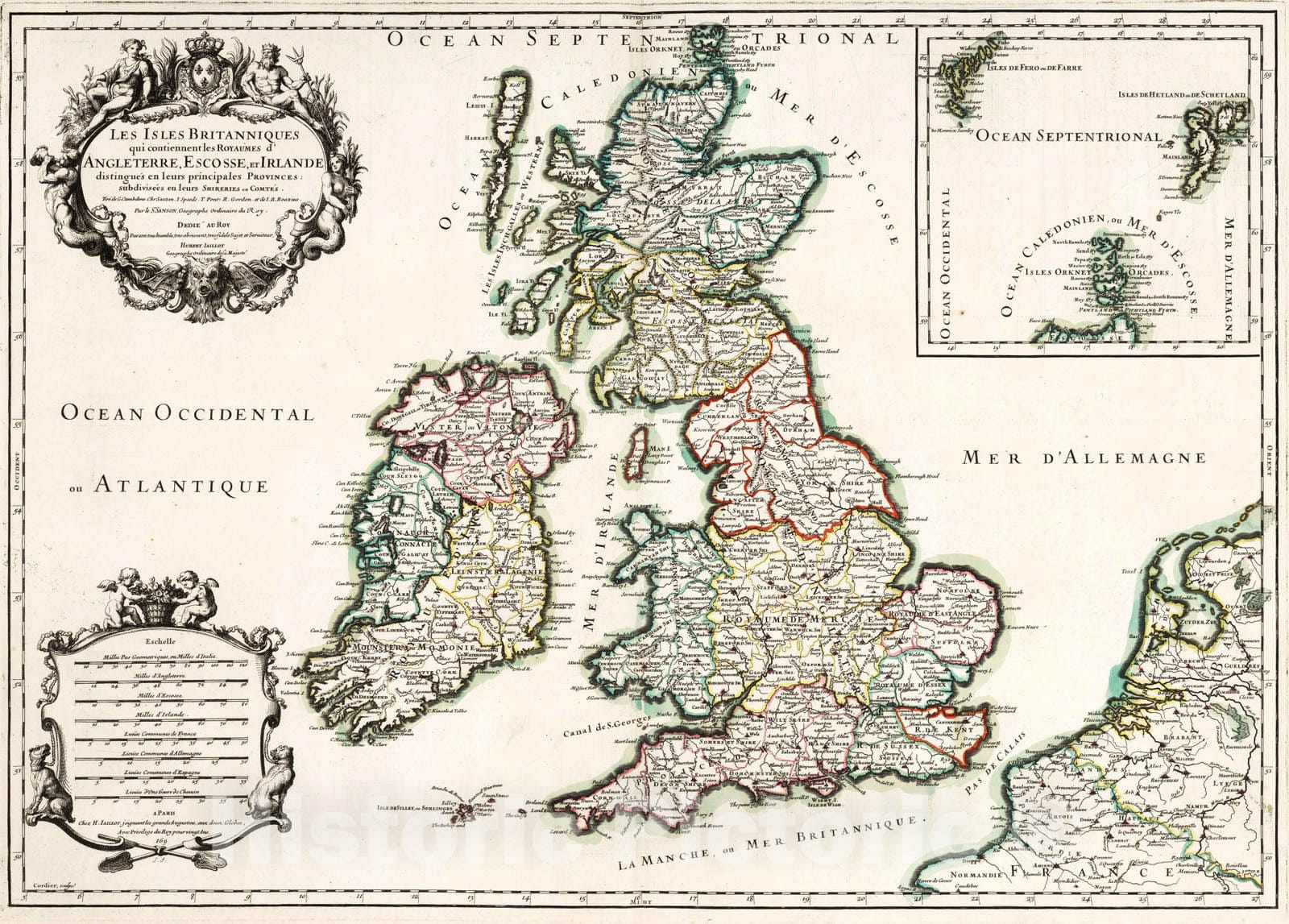 • Historic Map : Ireland, British Isles 1695 Les Isles Britanniques. , Vintage Wall Art