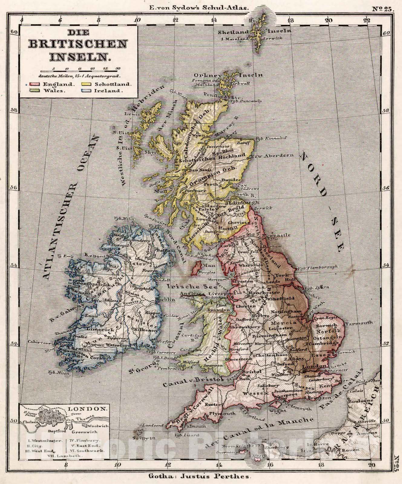 25. Die Britischen Inseln. (British Isles.) | E. von Sydow's Schul-Atlas in Zwei und Vierzig Karten. Gotha: Justus Perthus. 1872. | In German.