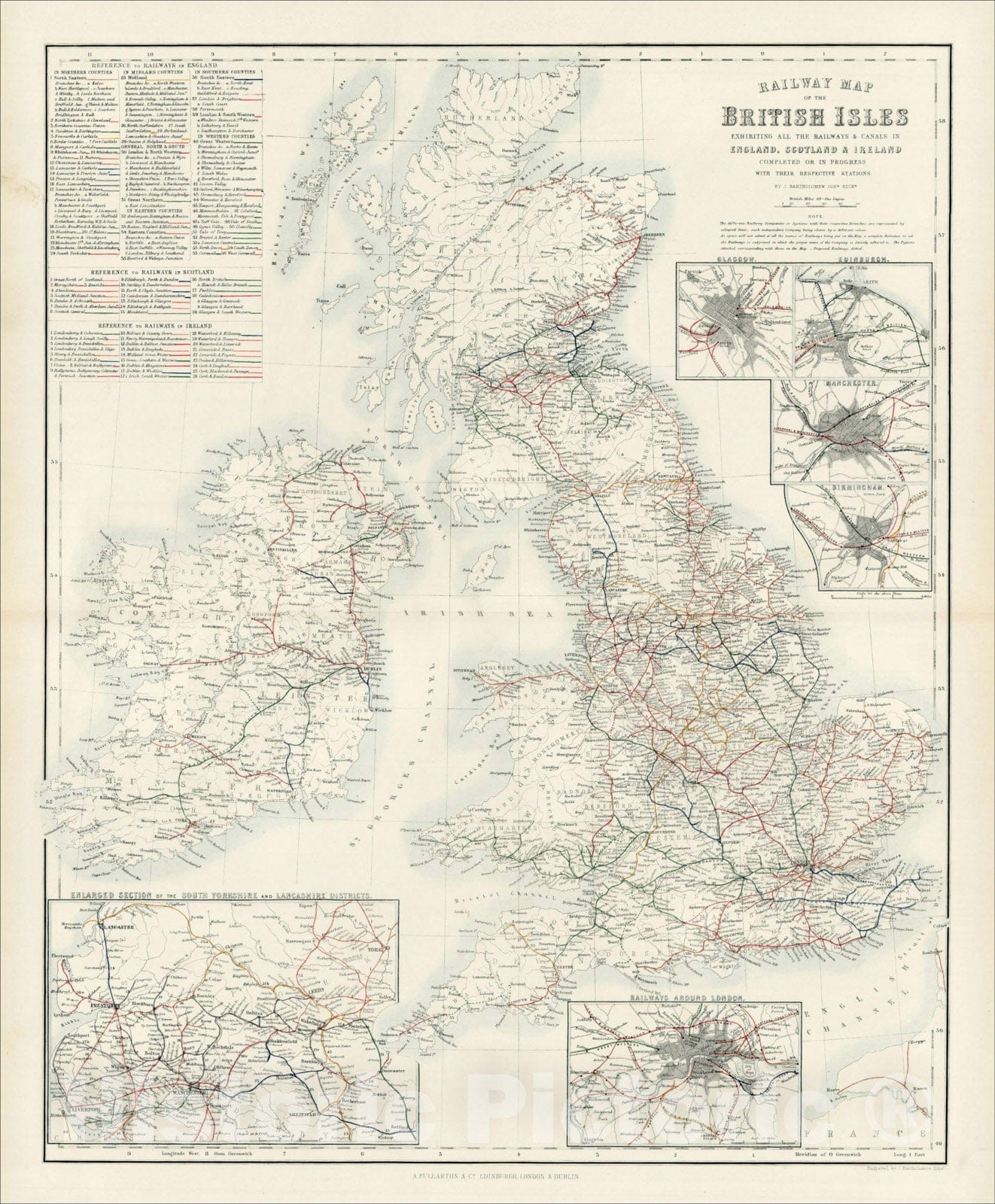 Railway Map of the British Isles Exhibiting All The Railways & Canals In England, Scotland & Ireland,, 1854, Archibald Fullarton & Co.