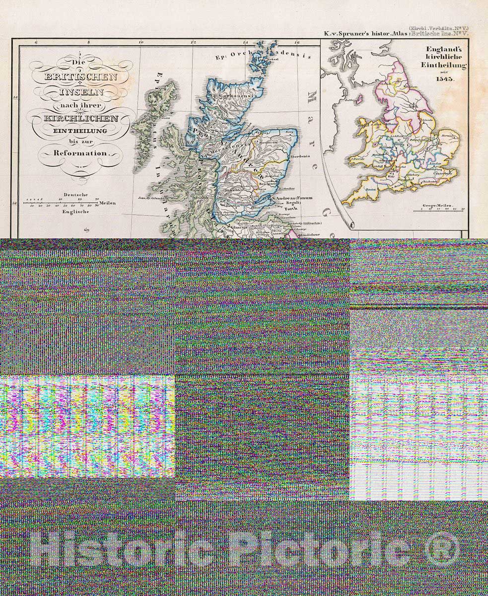 Historic Map : Spruner Map of The British Isles with ecclesiastical divisions, 1854, Vintage Wall Art