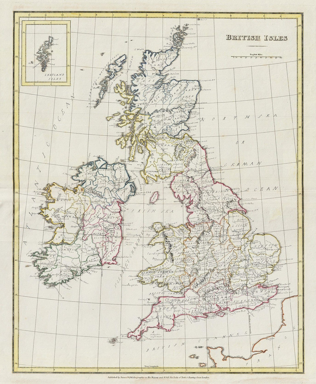 Historic Map : Pinkerton Map of The British Isles (England, Scotland, Ireland) , 1818, Vintage Wall Art
