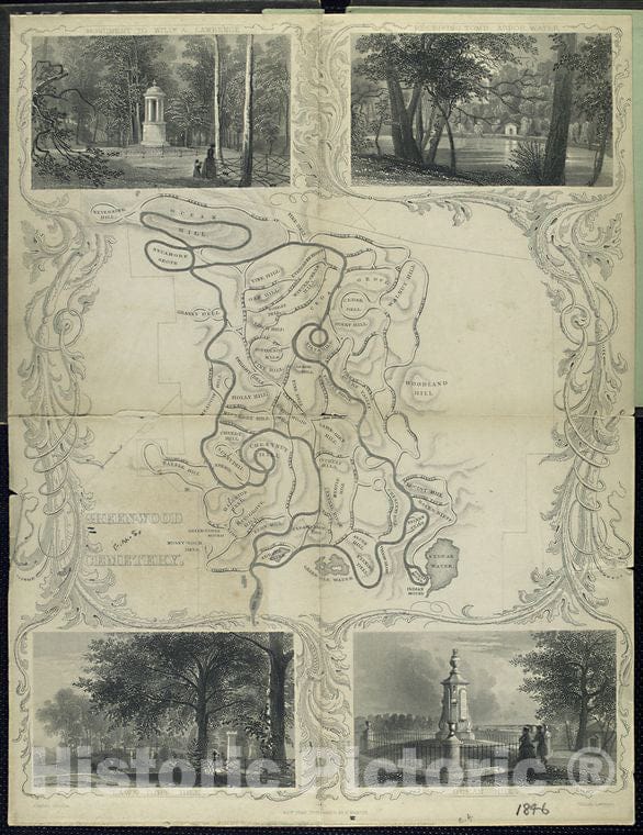 • .Historic 1846 Map - Green-Wood Cemetery - Brooklyn (New York, N.Y.) - New York (N.Y.) - New York (State) - New Yorkmaps Of New York City And State - Brooklyn - Vintage Wall Art