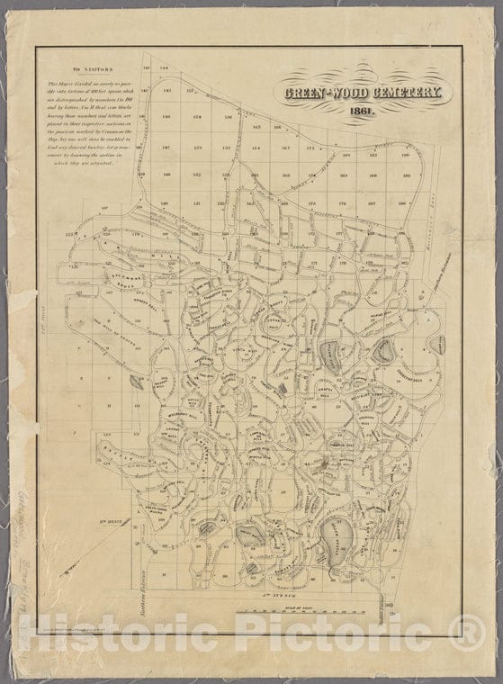 Historic 1861 Map - Greenwood Cemetery. - Brooklyn (New York, N.Y.) Maps Of New York City And State - Brooklyn