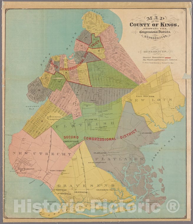 Historic 1869 Map - Map Of The County Of Kings Showing The Congressional Districts. - Brooklyn (New York, N.Y.) Maps Of New York City And State - Brooklyn