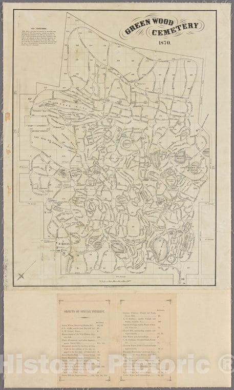 Historic 1870 Map - Greenwood Cemetery [Legend On Separate Sheet Attached.] - Brooklyn (New York, N.Y.) Maps Of New York City And State - Brooklyn