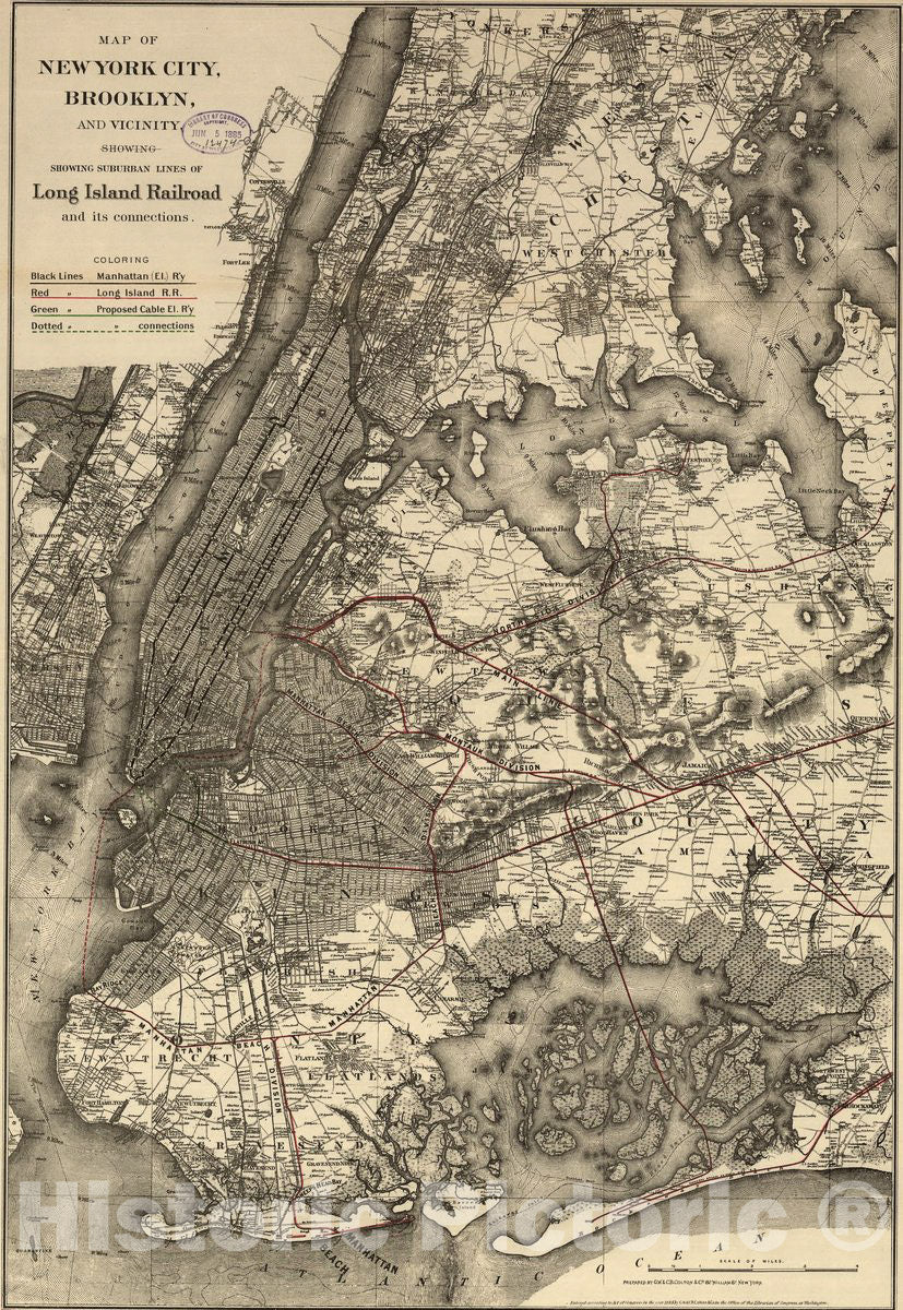 Historic 1885 Map - Map of New York City, Brooklyn, and Vicinity, shewing sic Suburban Lines of Long Island Railroad and its Connections.