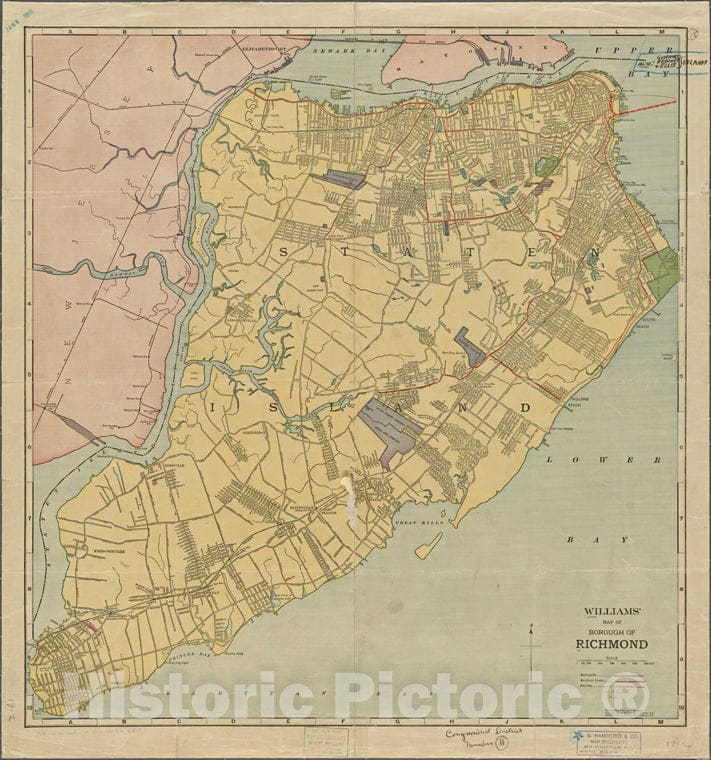 • .Historic 1911 Map - Map Of The Borough Of Richmond. Supplement To The Brooklyn Eagle Almanac.Of New York City And State - Staten Island - Vintage Wall Art