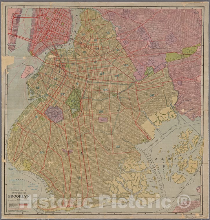 Historic 1911 Map - Williams' Map Of Borough Of Brooklyn. - Brooklyn (New York, N.Y.) Maps Of New York City And State - Brooklyn
