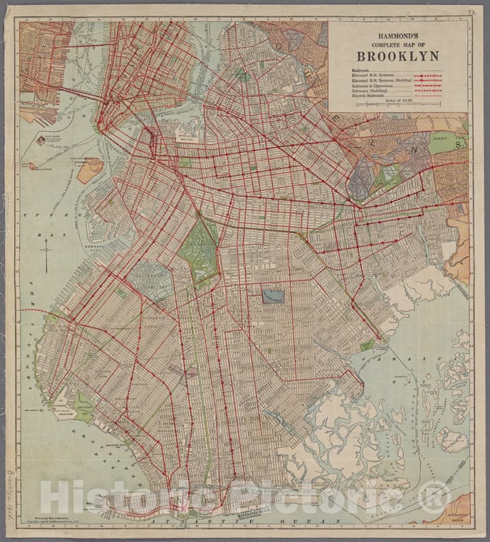 Historic 1914 Map - Hammond'S Complete Map Of Brooklyn. - Brooklyn (New York, N.Y.) Maps Of New York City And State - Brooklyn
