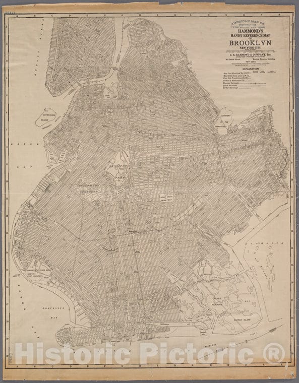 Historic 1920 Map - Hammond'S Handy Reference Map Of Brooklyn, N. Y. C. - Brooklyn (New York, N.Y.) Maps Of New York City And State - Brooklyn, V2