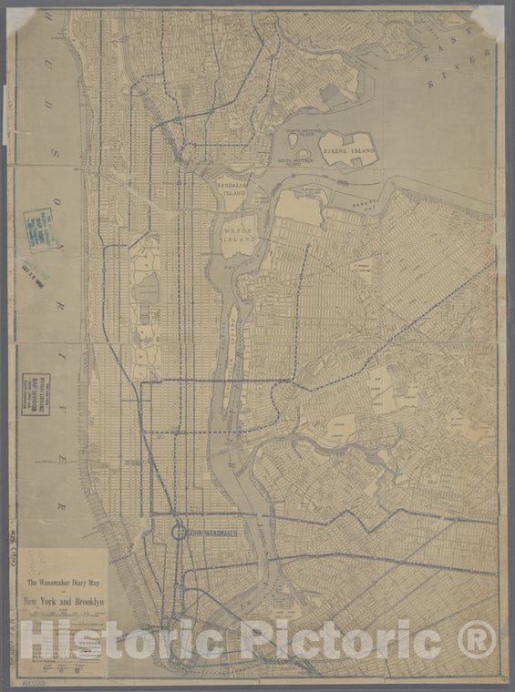 Historic 1920 Map - The Wanamaker Diary Map Of New York And Brooklyn.Of New York City And State - Manhattan