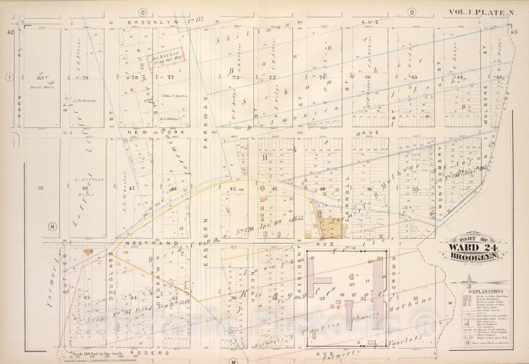 Historic Map - 1880 Brooklyn Ave, City Line, Rogers Ave, Butler St Park Pl; New York Ave, Nostrand Ave, Douglass St Degraw St Eastern Parkway, Union St Presi