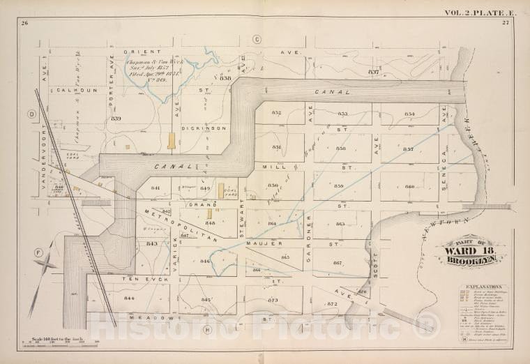 Historic Map - 1880 Brooklyn (New York, N.Y.), Orient Ave, City Line, Meadow St Canal, Vandervoort Ave;