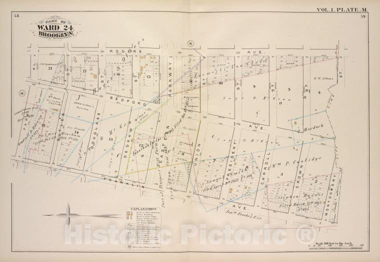 Historic Map - 1880 Brooklyn (New York, N.Y.), Roges Ave, City Line, Franklin Ave, Park Pl; ] - Vintage Wall Art