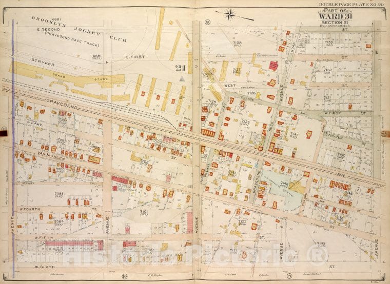 Historic Map - 1907 Brooklyn (New York, N.Y.) Vol. 7, Plate No. 20; Part Of Ward 31, Section 21; [E. 2Nd St, Ave W; Including W. 6Th St, Ave S]