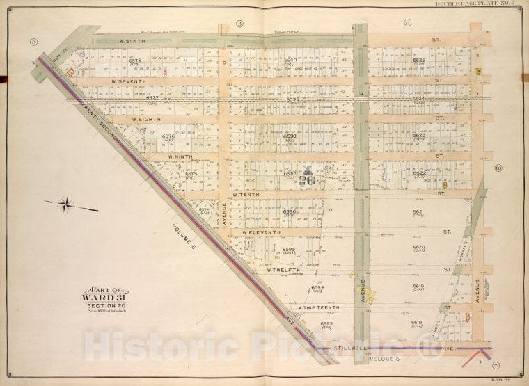 Historic Map - 1907 Brooklyn (New York, N.Y.) Vol. 7, Plate No. 9; Part Of Ward 31, Section 20; [W. 6Th St, Ave Q, Stillwell Ave; Including 22Nd Ave, 65Th St.]