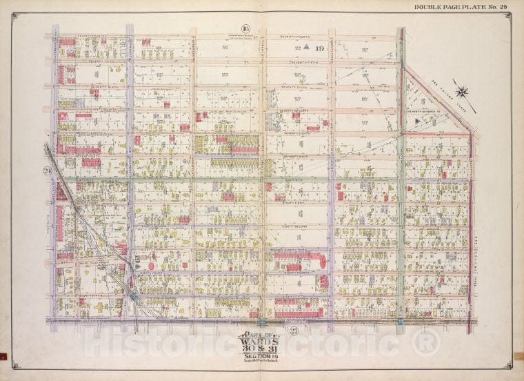 Historic Map - 1916, Brooklyn (New York, N.Y.) Vol. 2, No. 25; Part Of Wards 30 & 31 Section 19; [Bounded By 74Th St, 22Nd Ave, Stillwell Ave; ] - Vintage Wall Art