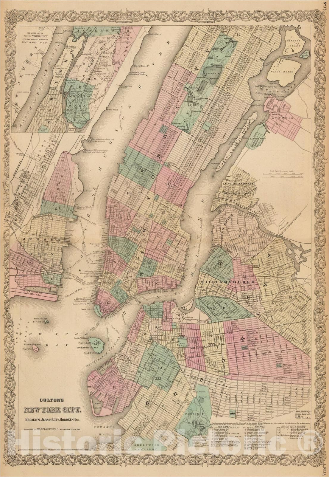 Historic Map : Colton's New York City, Brooklyn, Jersey City, Hoboken, etc., 1872, G.W. & C.B. Colton, Vintage Wall Art