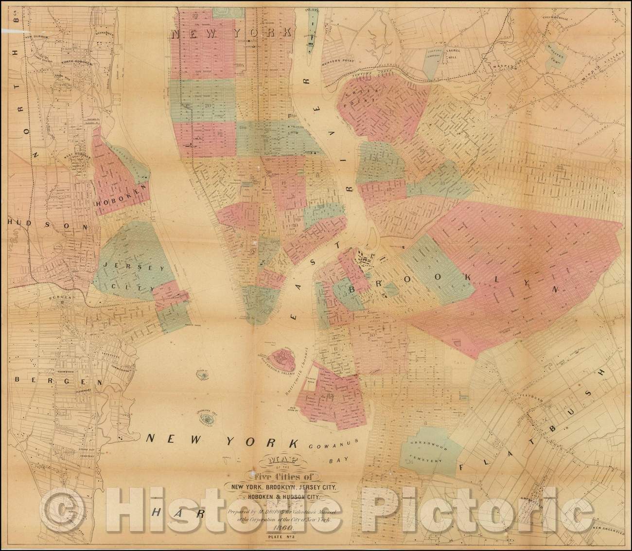 Map of the Five Cities of New York, Brooklyn, Jersey City, Hoboken & Hudson City, 1860, Matthew Dripps