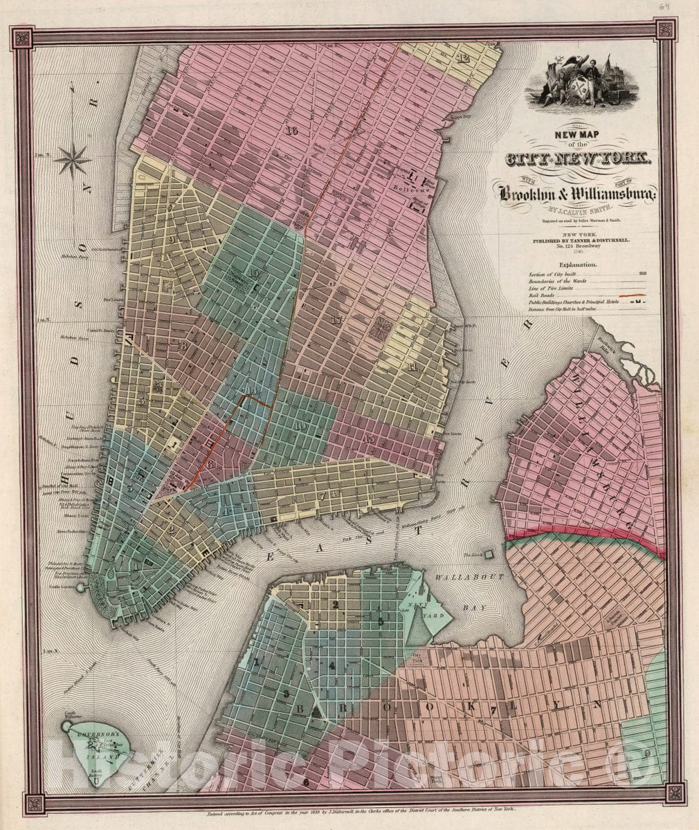 • .Historic Map : New Map of The City of New York with Brooklyn & Part of Williamsburg, 1840 Atlas - Vintage Wall Art