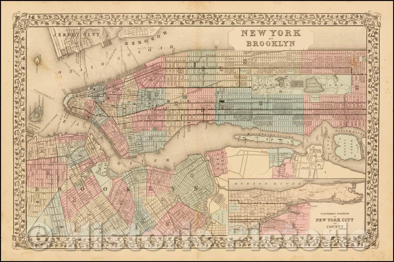 Historic Map - New York and Brooklyn, 1867, Samuel Augustus Mitchell Jr. v2