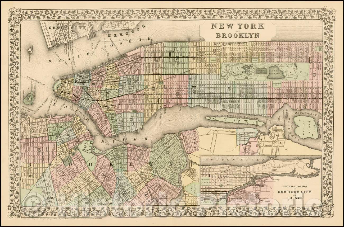 • .Historic Map - New York and Brooklyn, 1878, Samuel Augustus Mitchell Jr. v1