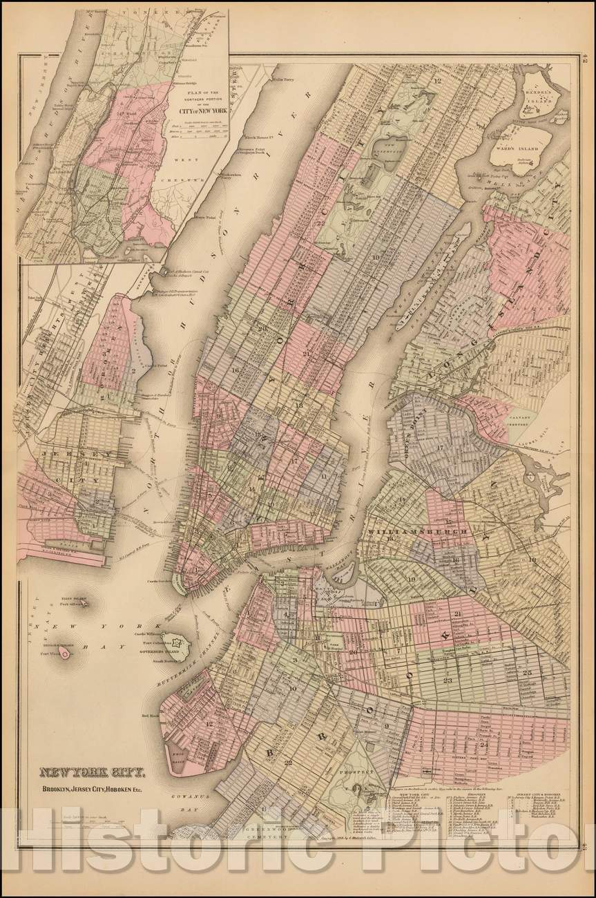 Historic Map - New York City, Brooklyn, Jersey City, Hoboken, etc, 1873, OW Gray v1