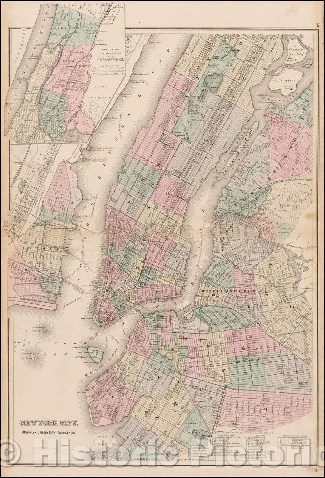 • .Historic Map - New York City, Brooklyn, Jersey City, Hoboken, Etc, 1873, O.W. Gray v1