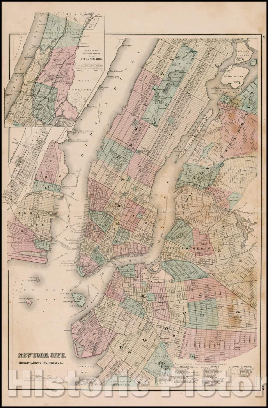 Historic Map - New York City, Brooklyn, Jersey City, Hoboken, Etc, 1875, O.W. Gray - Vintage Wall Art