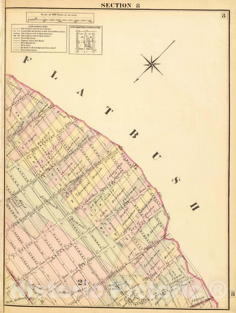 Historic Map : Section 8 (Farm line map of The City of Brooklyn. Compiled and Drawn by Henry Fulton. 1874), 1874 City Atlas - Vintage Wall Art