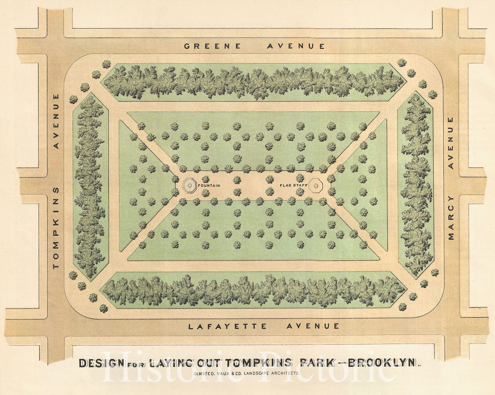 Historic Map : Von King Park or Tompkins Park, Brooklyn, New York, Vaux and Olmstead, 1871, Vintage Wall Art